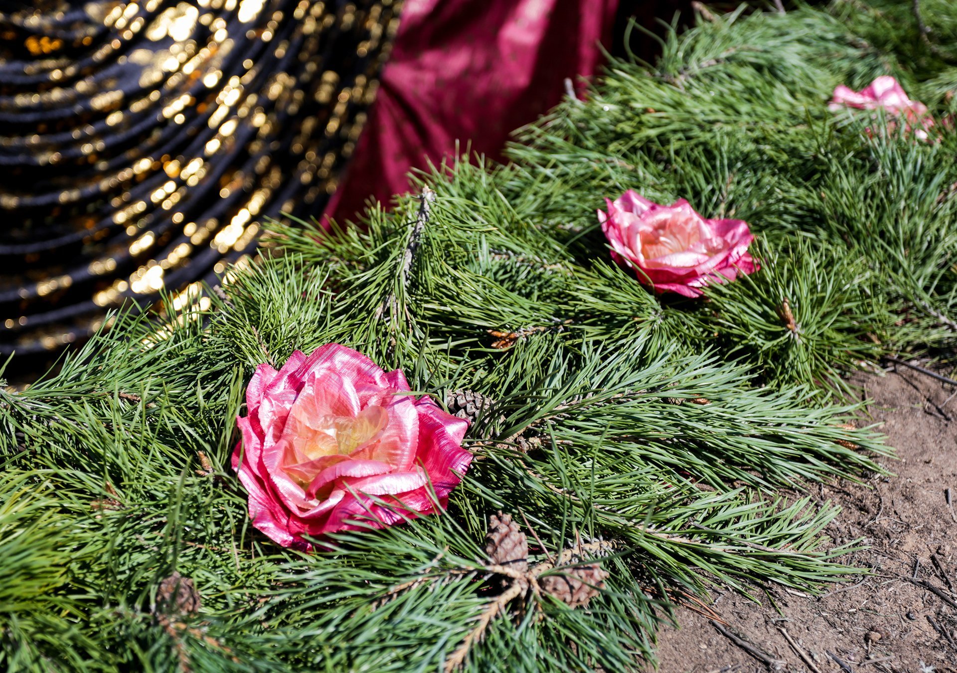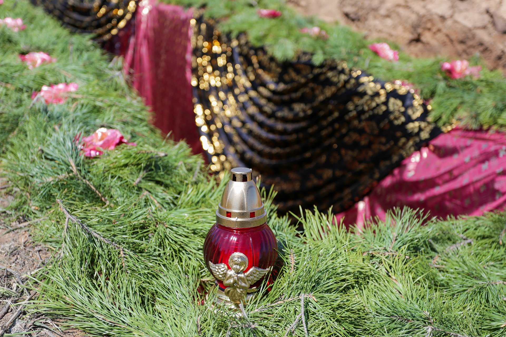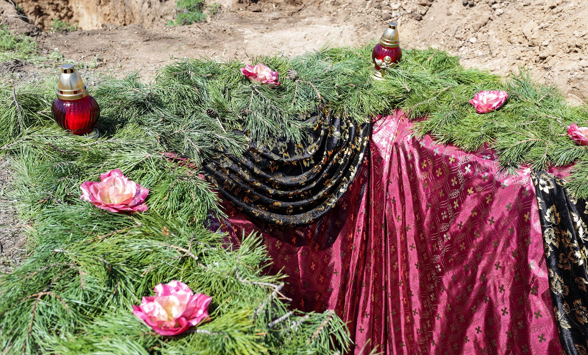 Сосновый лапник укладывается на дно и края могилы. Еловая хвоя придает особую атмосферу обряду погребения, имеет неповторимый запах и цвет. Это особенно важно, если в этот день идет дождь: каждому человеку важно обеспечить красивые и достойные проводы близкого в последний путь, а ткань закроет грязь и слякоть, придав месту погребения аккуратное оформление.