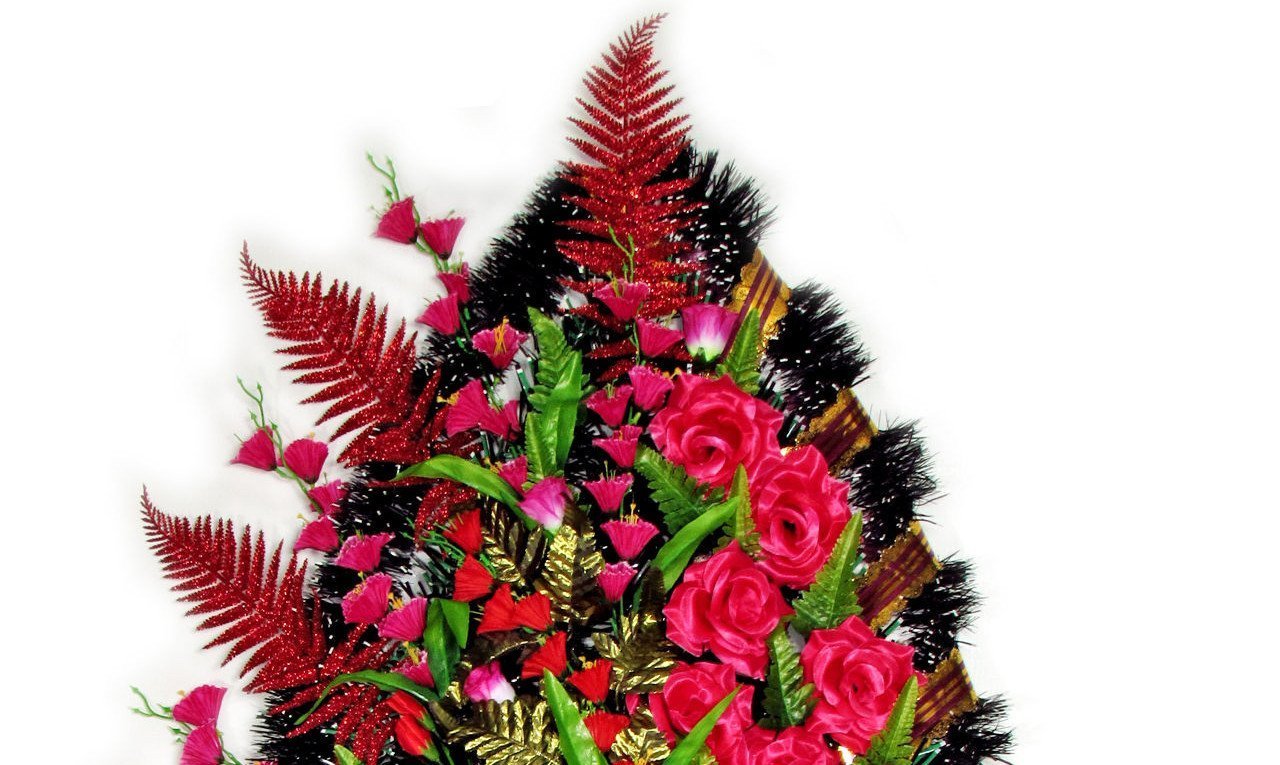 Багряный цвет венка означает привязанность и искренность, граничащую с детским, беззащитным откровением, возникающим только во время прощания с самым близким человеком...