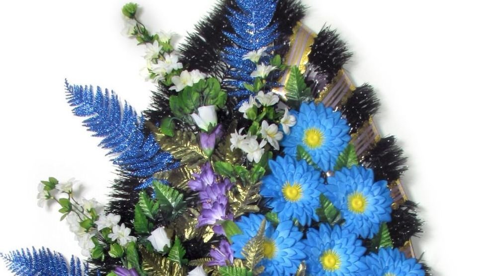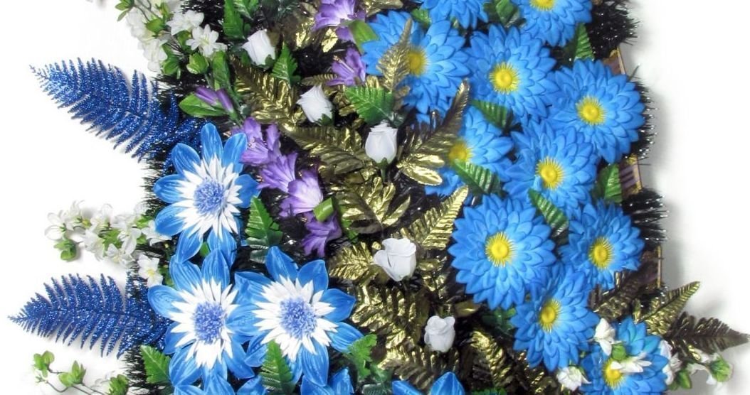 Чистое синее небо всегда символизировало гармонию, умиротворение и спокойную безоблачную жизнь достойную памяти близких нам людей... Венок голубого цвета полон преданности и бескорыстия, он является символом надежды, всепрощения и веры.